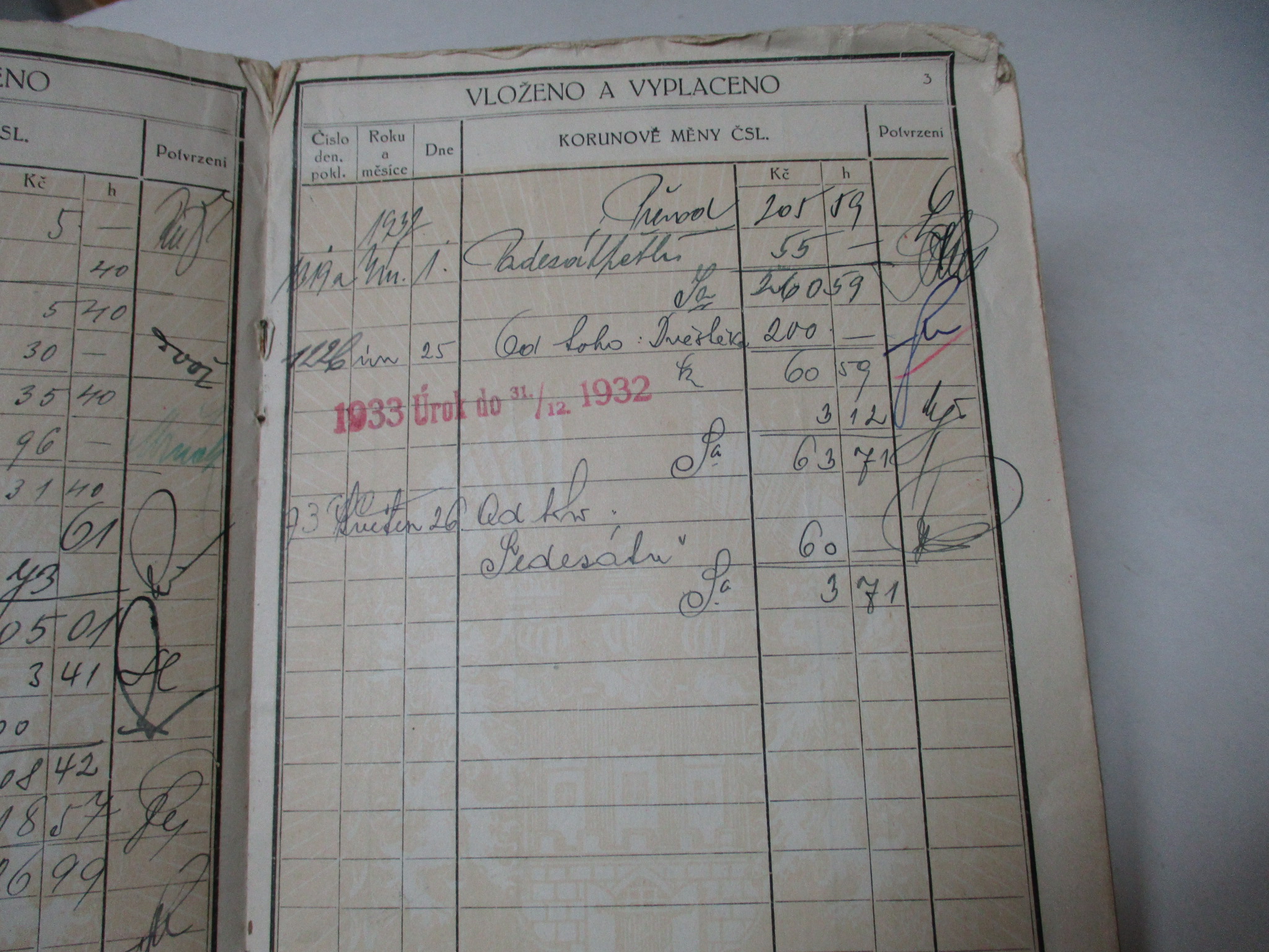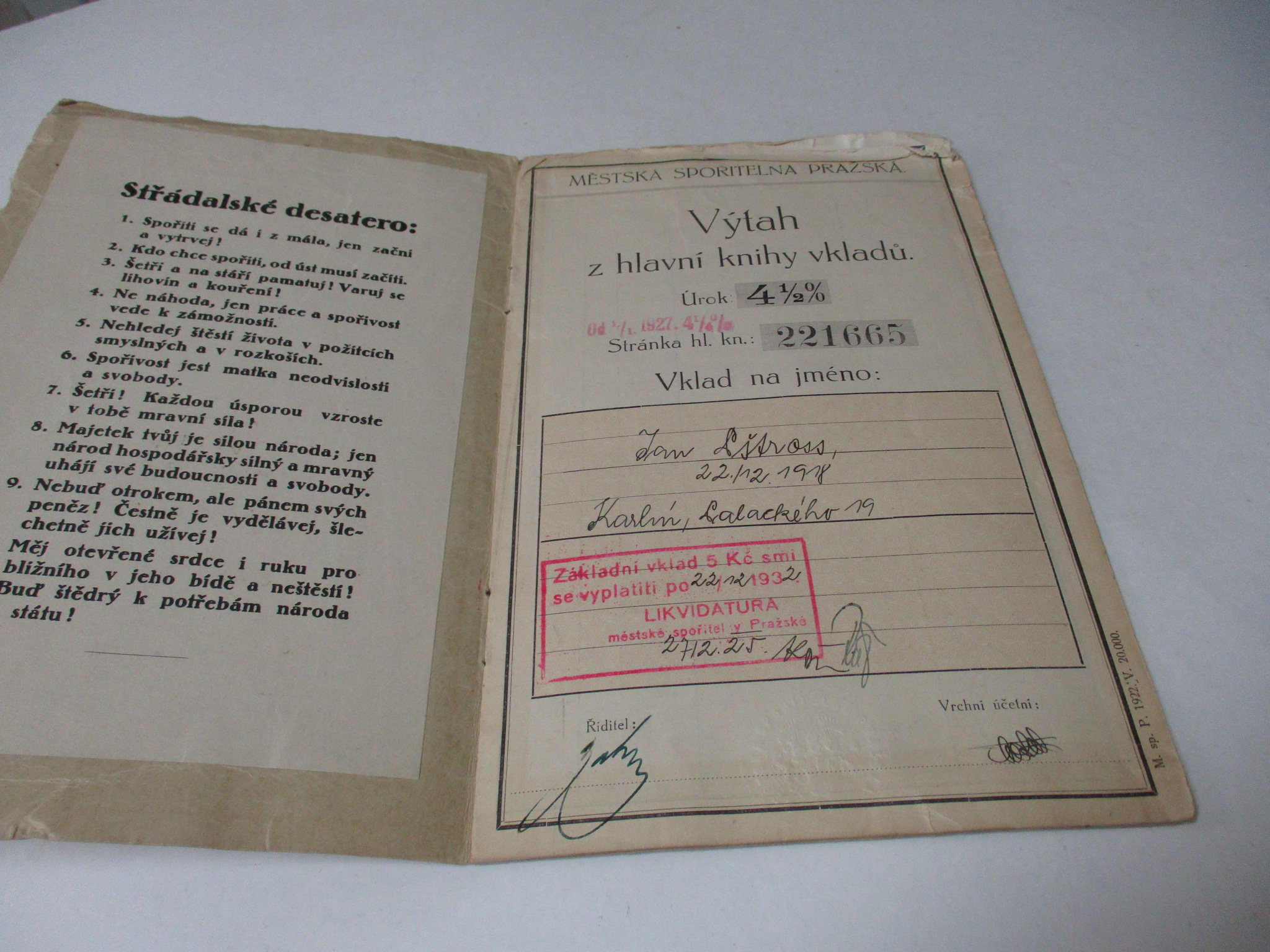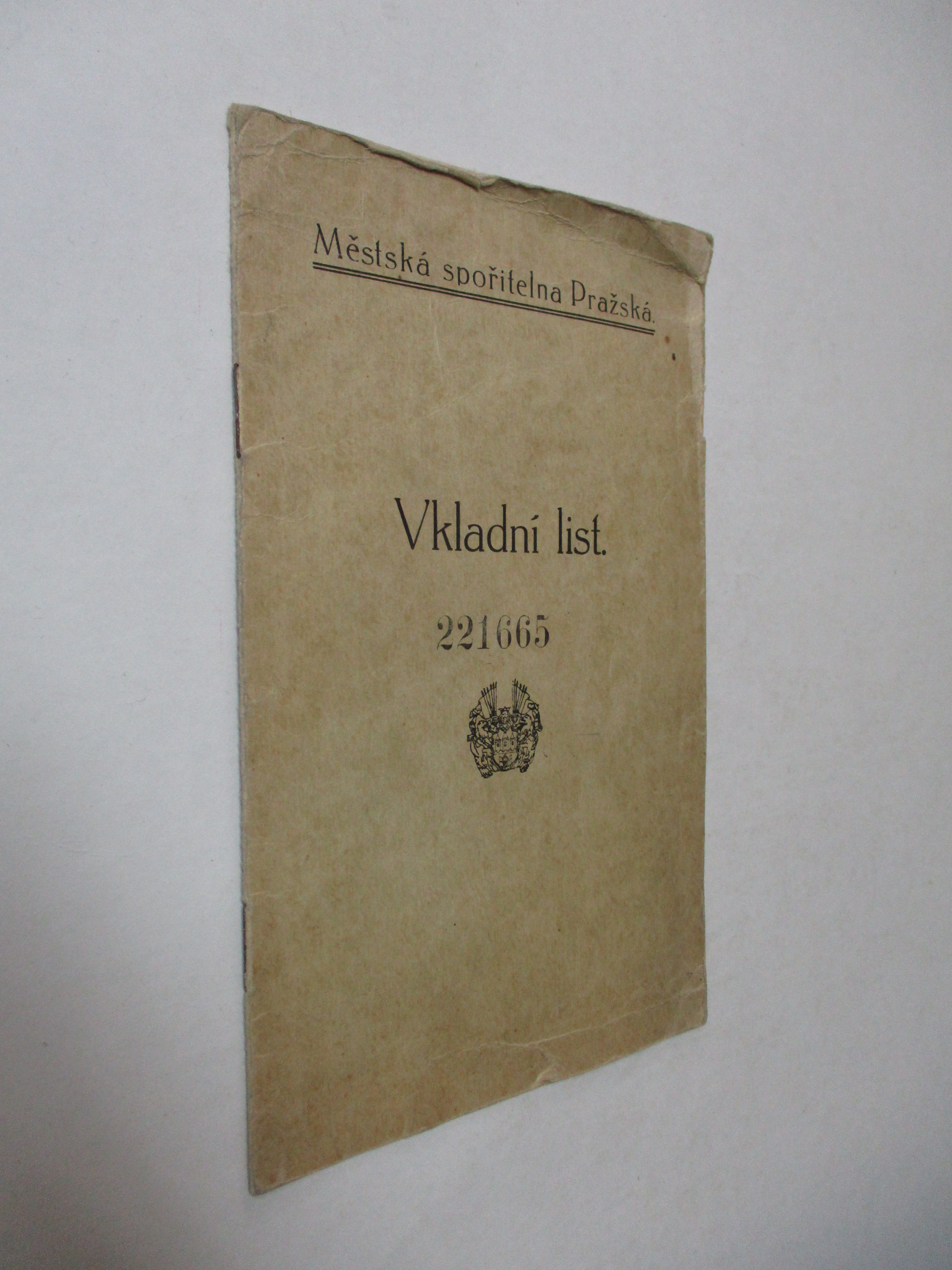 Vkladní list - Městská spořitelna Pražská
