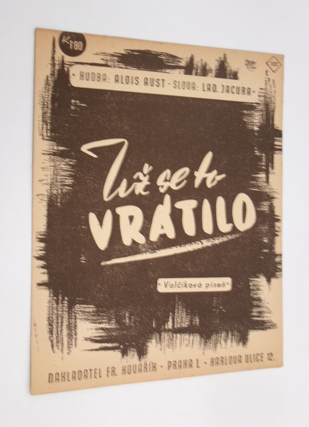Malý formát noty, text. Píseň a slova rozměr 16,5 x 13,5 cm. Valčík