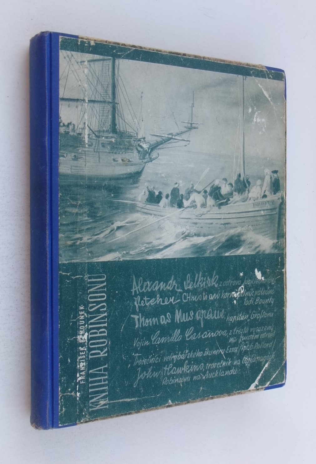 Poloplátěná vazba s obálkou na desce knihy, ilustrace Zdeněk Burian